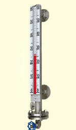 在您選用此產品前我們先將磁性翻柱液位計的工作原理作一簡單的介紹。它有一容納浮球的腔體我們稱其為主體管或外殼,它通過法蘭或其他接口與容器組成一個連通器;這樣它腔體內的液面與容器內的液面是相同高度的,所以腔體內的浮球會隨著容器內液面的升降而升降;這時候我們并不能看到液位,所以我們在腔體的外面裝了一個翻柱顯示器,因為我們在制造浮球時在浮球沉入液體與浮出部分的交界處安裝了磁鋼,它與浮球隨液面升降時,它的磁性透過外殼傳遞給翻柱顯示器,推動磁翻柱翻轉180°;由于磁翻柱是有紅、白兩個半圓柱合成的圓柱體,所以翻轉180°后朝向翻柱顯示器外的會改變顏色(液面以下紅色、以上白色),兩色交界處即是液面的高度。