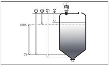 注:使用透鏡雷達液位計時,務必保證最高料位不能進入測量盲區(圖中1所示區域)。