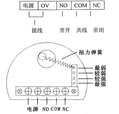 2.具體方法:打開接線盒,將扭力彈簧靠近多孔一端拿出,根據需要插入對應的孔中(靠近端子臺的孔扭力最弱)。