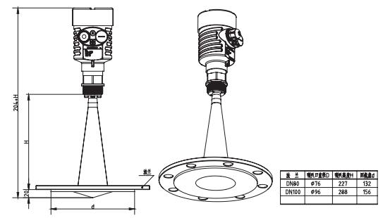 SKD57衛生型平面雷達物位計外型尺寸圖