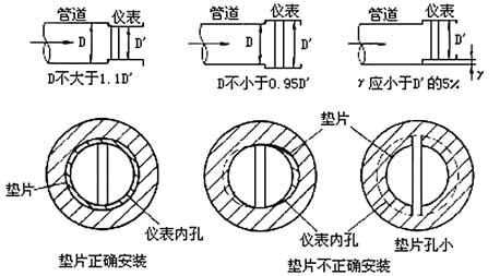 ③ 密封墊不能凸入管道內,其內徑可比傳感器內徑大1~2mm;