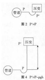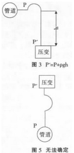 建議采用圖2的安裝方式,如不得已需要選擇圖3、圖4的安裝方式一定要對壓力進行補償。不建議按照圖5的方式安裝,因為無法確定P'與P的關系。而一般在儀表的說明書中大都是建議以圖5的方式來安裝。在此建議大家在有條件的情況下按照圖2來安裝壓力變送器。