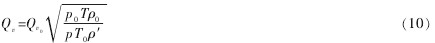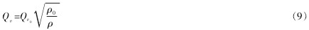 測量非標定狀態下的空氣流量時,可直接使用式(9)計算。但 ρ 為被測氣體在工作狀態下的密度,實際使用起來較為不便。為此,可以將流體密度和所處狀態分開修正,即先在標定狀態下對被測流體的密度進行修正,然后再進行狀態修正。 最后的修正公式為:
