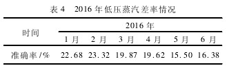 畢托巴蒸汽流量計,經過調試、組態等相關工作以后,至3月開始,蒸汽系統低壓蒸汽外供量以該計量表(FT414)數據為準,表4為2016年1-6月份蒸汽準確率情況。