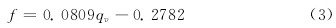 將表1中數據擬合為線性函數,得到如下燃油渦輪流量傳感器產生脈沖的頻率和燃油流量的關系: