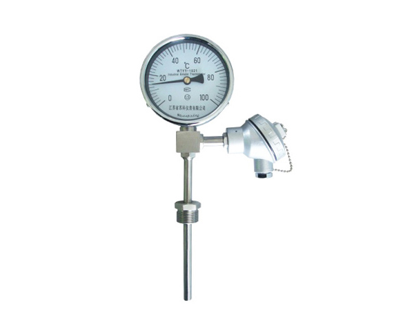 帶熱電阻(熱電偶)雙金屬溫度計既滿足現場測溫需求,亦滿足遠距離傳輸需求,遠傳雙金屬溫度計可以直接測量各種生產過程中的-40~+600℃范圍內液體、蒸氣和氣體介質以及固體表面的溫度測量。
